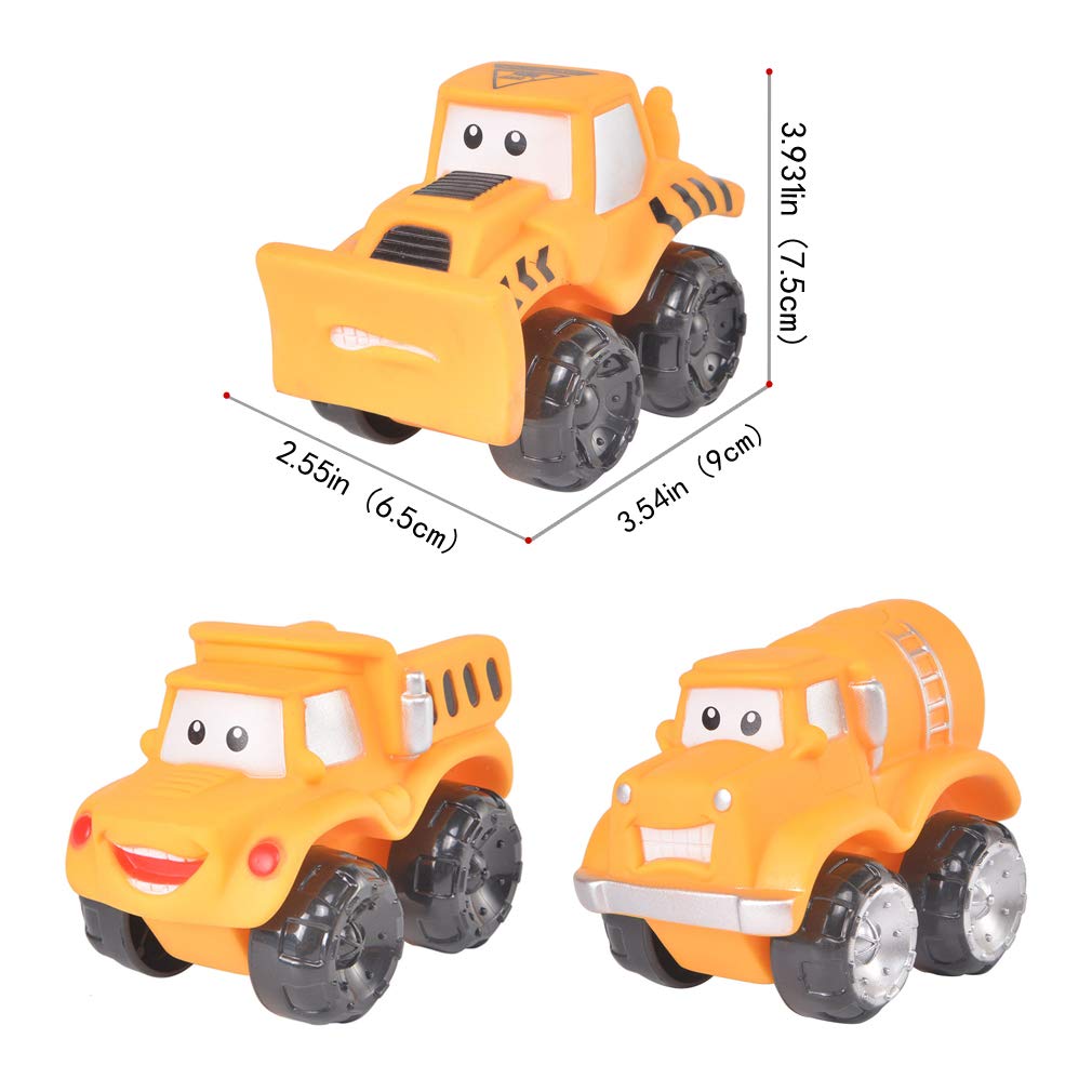 2. 3 Pack Car Toy Set For 3 4 5 6 Years Old Boys Girls Kid Gift Toy Carssoft Rubber Slide Forwardconstruction Trucks Cartoon Vehicles